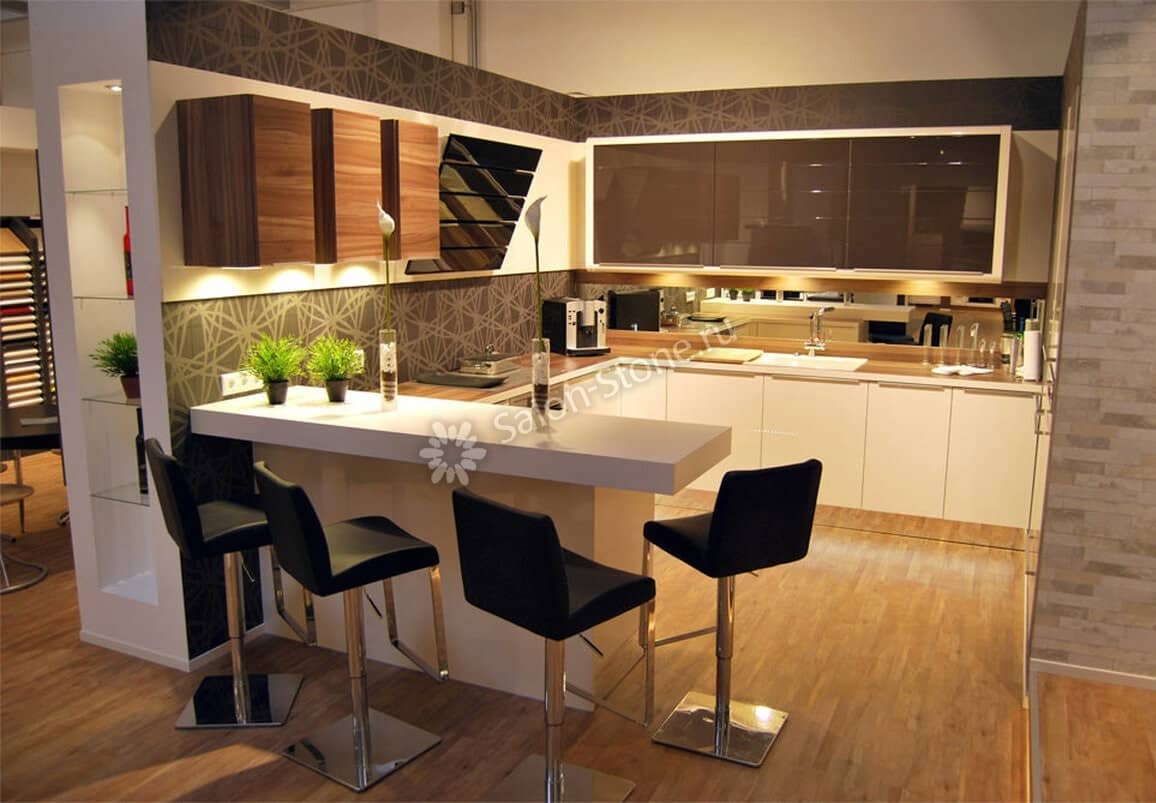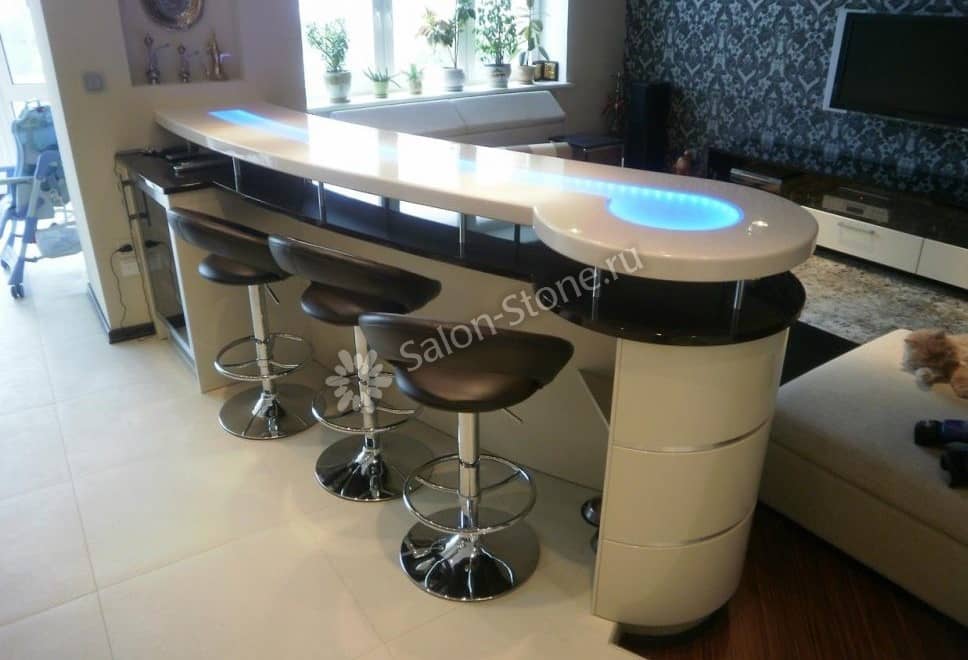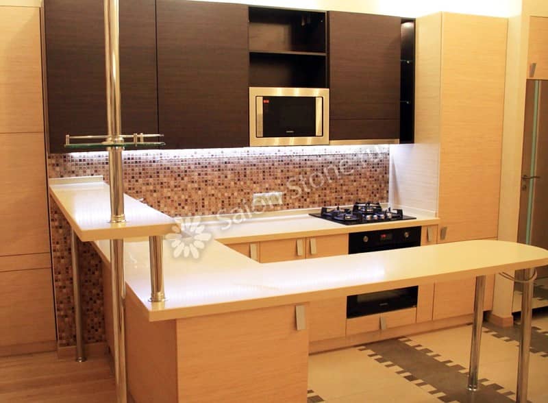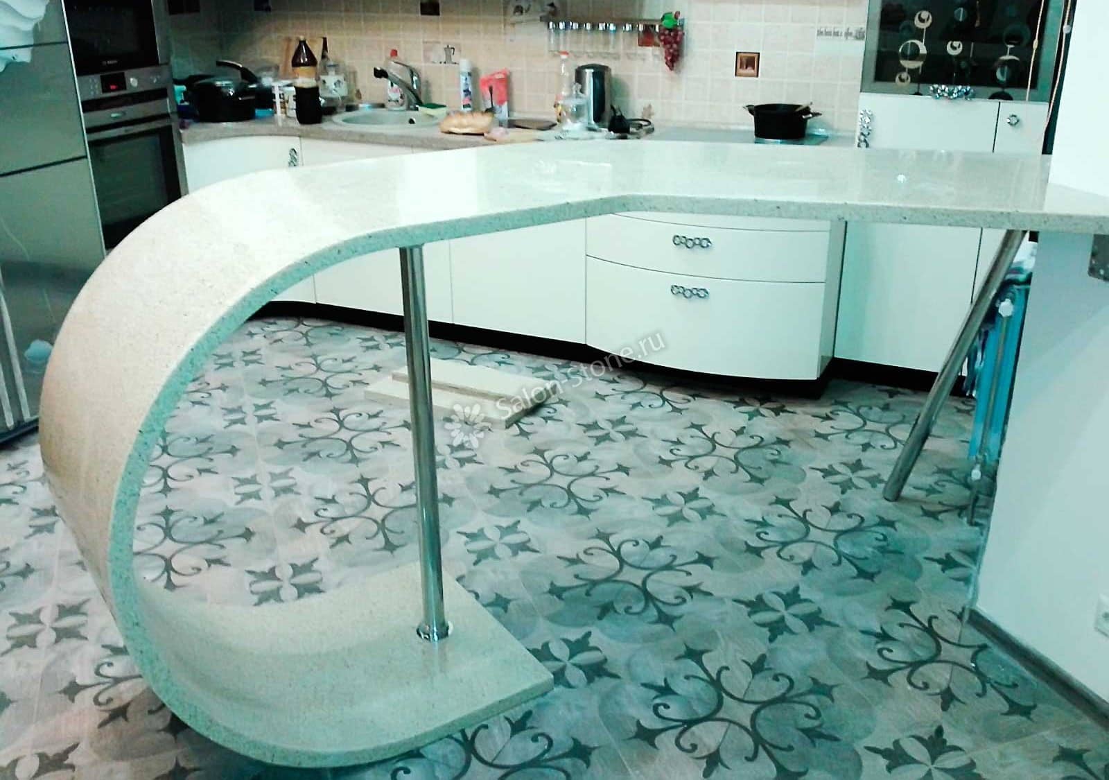 Но, являясь обладателем красивой поверхности, не забывайте о ней заботиться. Постарайтесь не ронять на нее слишком тяжелые предметы, не подвергать резким и сильным перепадам температур. Обязательно протирайте ее насухо, чтобы не допустить появления известковых пятен. При бережном и грамотном отношении ваша столешница прослужит вам не одно десятилетие.