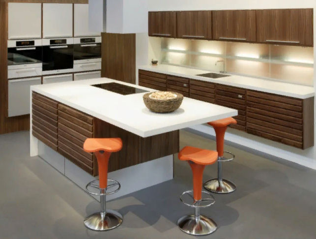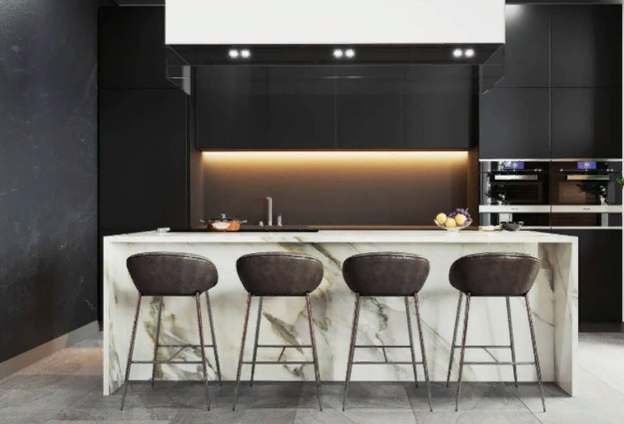 Островная барная стойка из камня может быть выполнена любой формы: прямоугольной, квадратной, овальной. Изготовленная из композитного материала, часть гарнитура отличается высокой прочностью, влагостойкостью и привлекательным внешним видом, который при правильной эксплуатации сохраняется долгие годы.