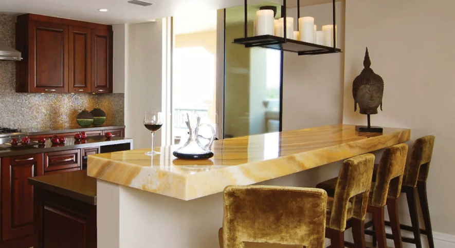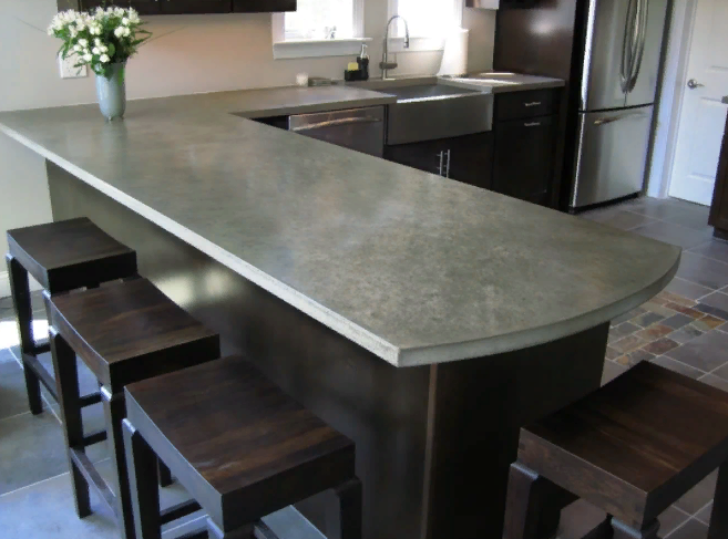 Выполненная из искусственного камня барная стойка со столом прочна и надежна. Ей не страшна влага и ультрафиолет. При производстве возможно использование любых цветовых пигментов, что позволяет создавать изысканную мебель различных оттенков и фактур.