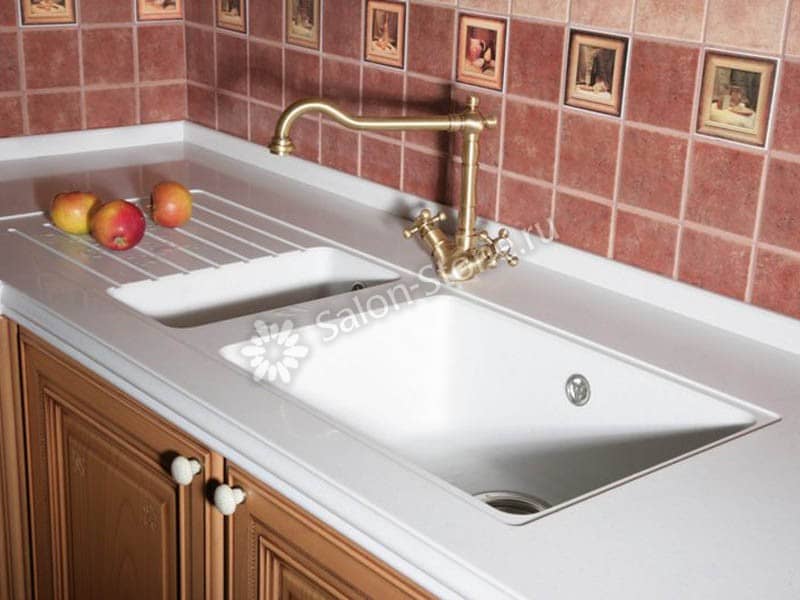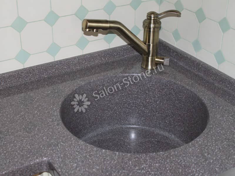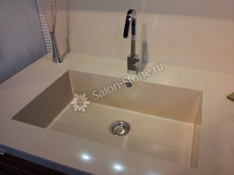 Чистоту и гигиеничность мойки из акрилового камня для кухни сложно переоценить. Искусственный материал невосприимчив к загрязнениям, не создает благоприятной для микробов и бактерий среды, не портится и не трескается. На его поверхности не остаются пятна даже от кофе, вина или чая – их легко убрать влажной губкой. В такой раковине можно смело мыть овощи или фрукты, не боясь вредной микрофлоры.