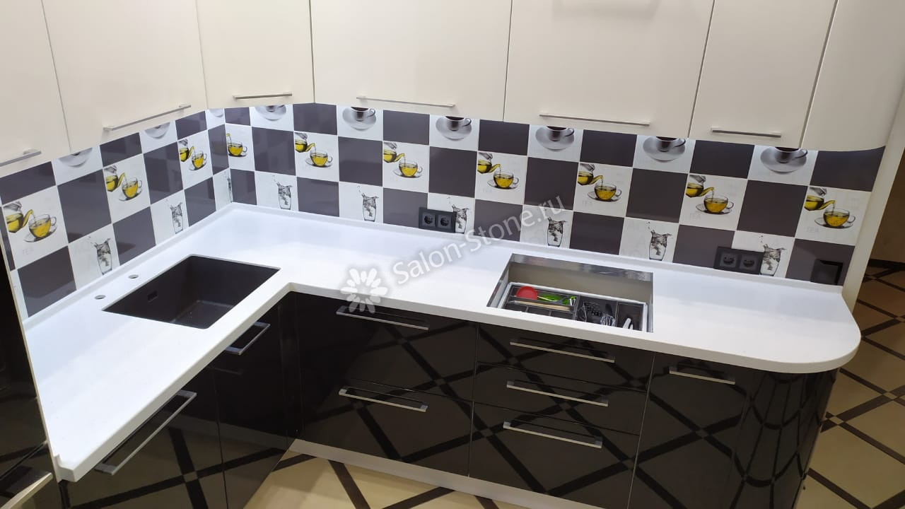 Акриловая угловая кухонная столешница из Akrilika P-104 Pure White
