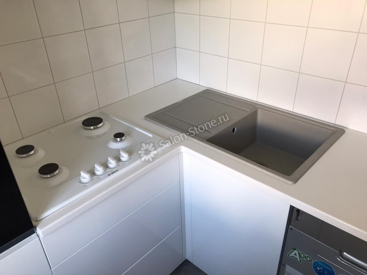 Кухонная столешница угловая из акрилового камня Akrilika P-104 Pure White