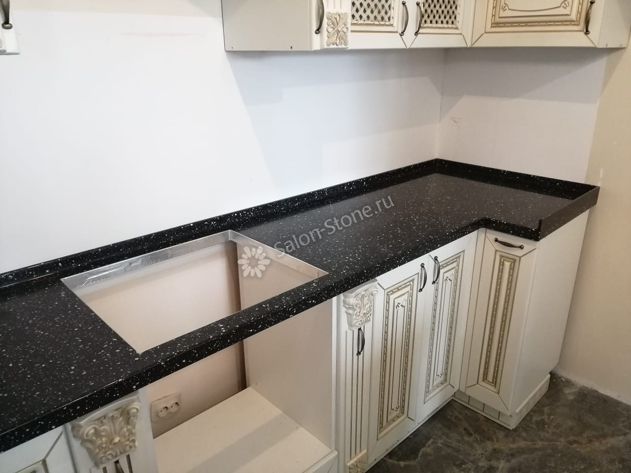 Столешница из искусственного камня для кухни черная из S-211 Romantic Night
