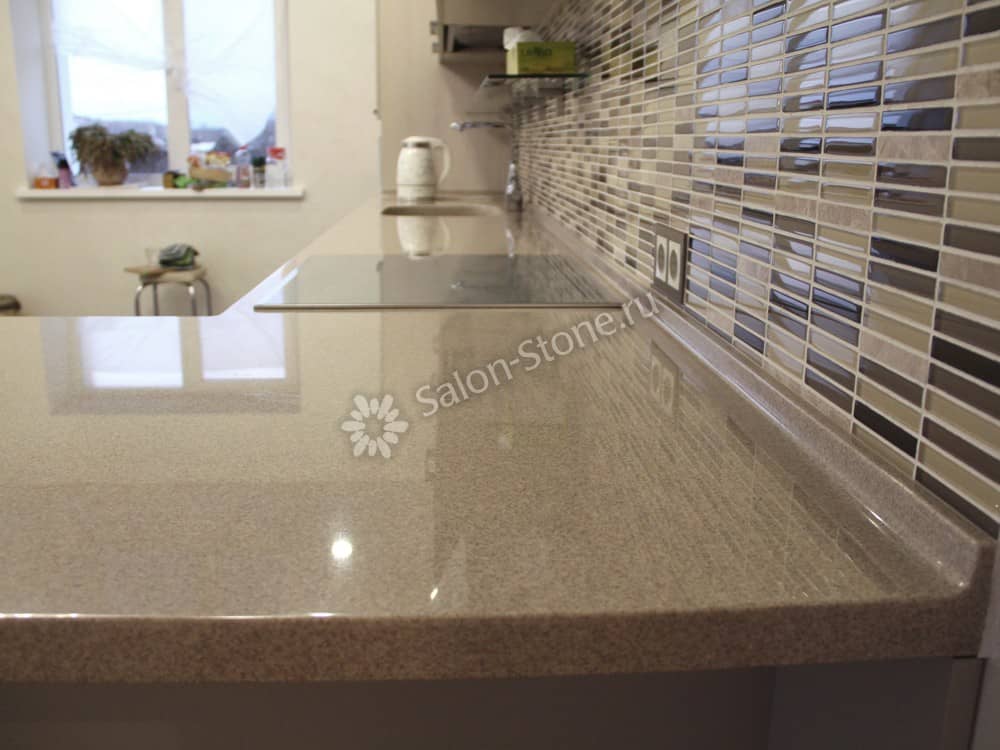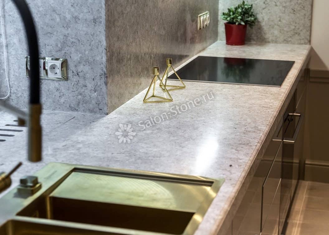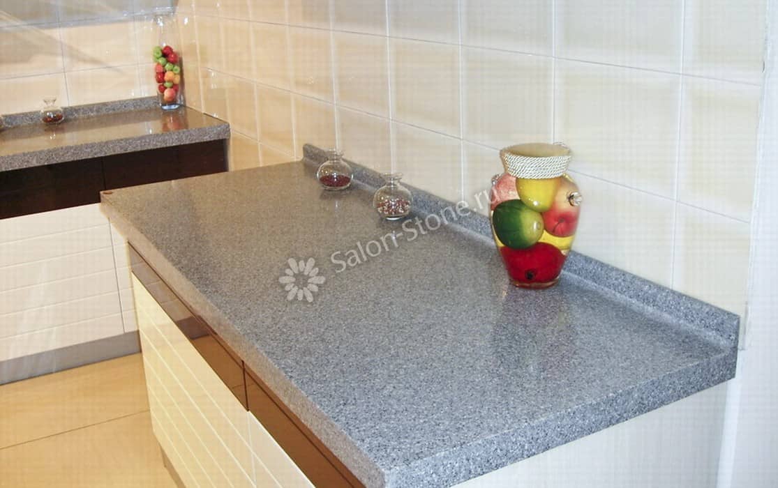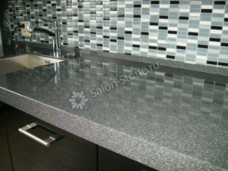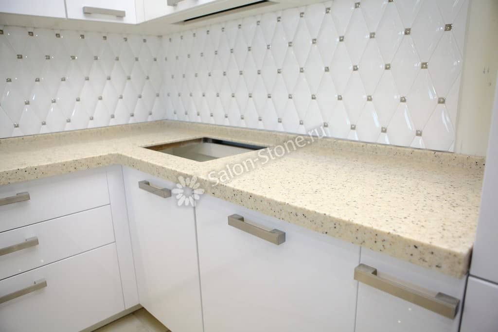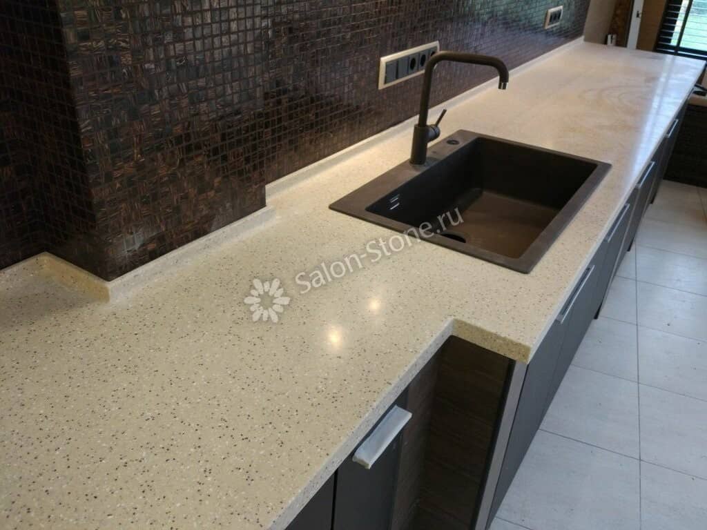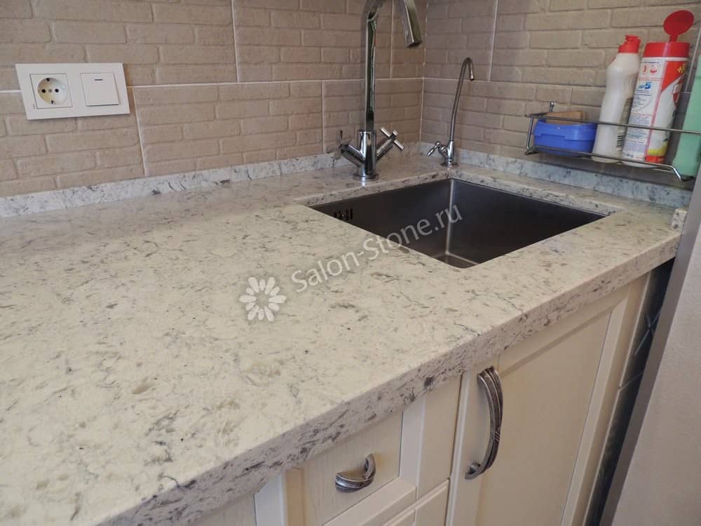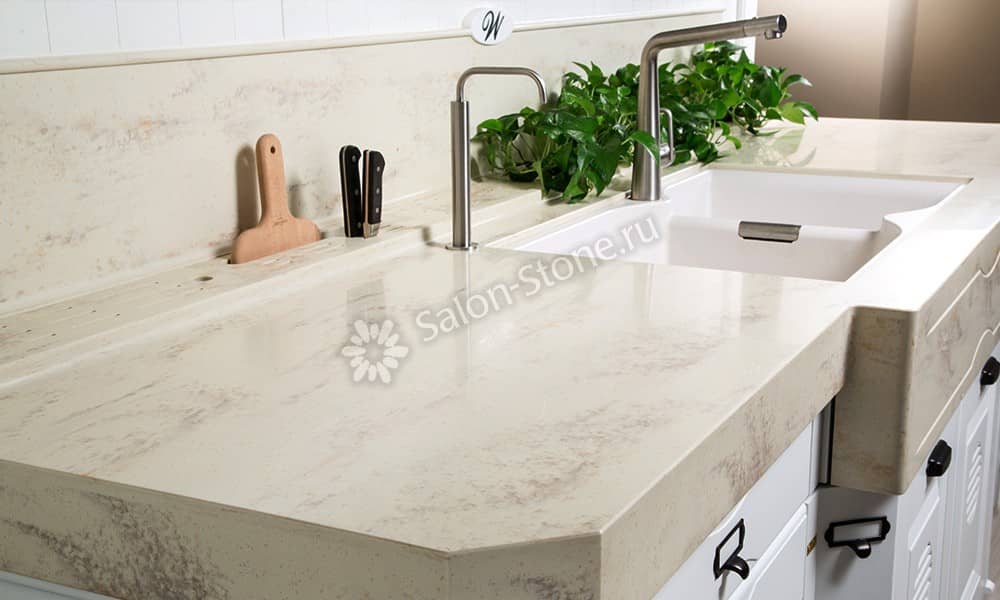 При этом искусственный камень лишен недостатков натурального: он не дает сколов и трещин, не реагирует на перепады температур и солнечные лучи, не впитывает воду и не создает питательной среды для бактерий. Такая рабочая поверхность гигиенична и долговечна.
