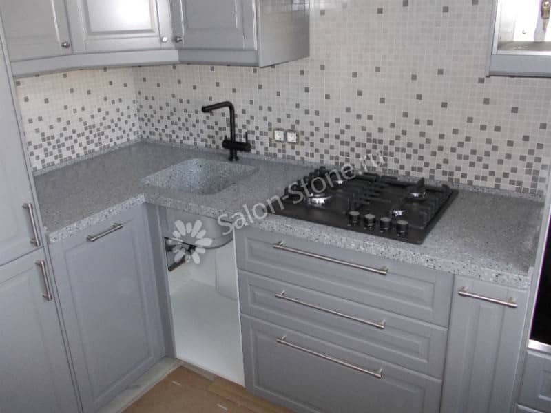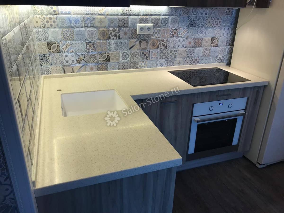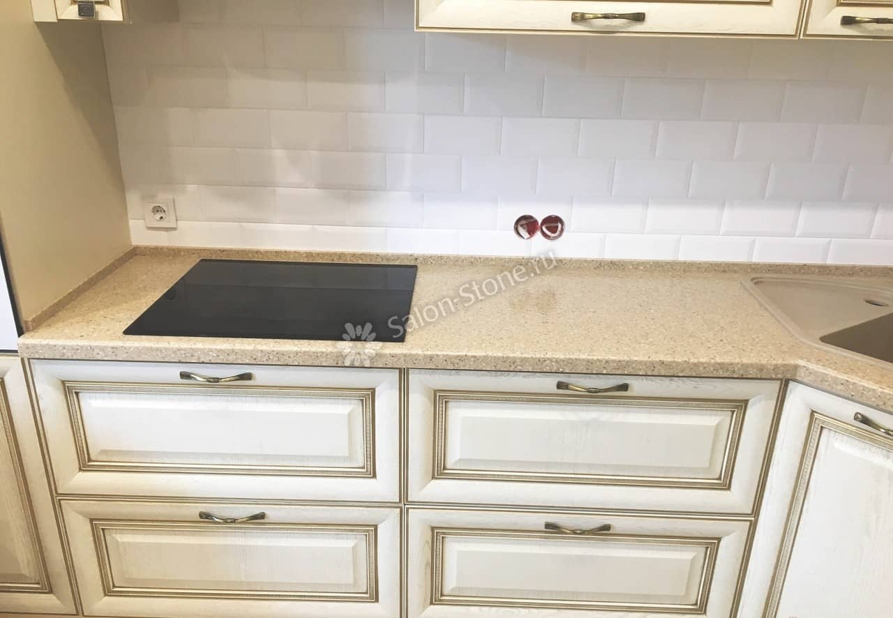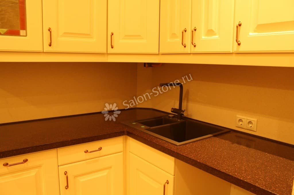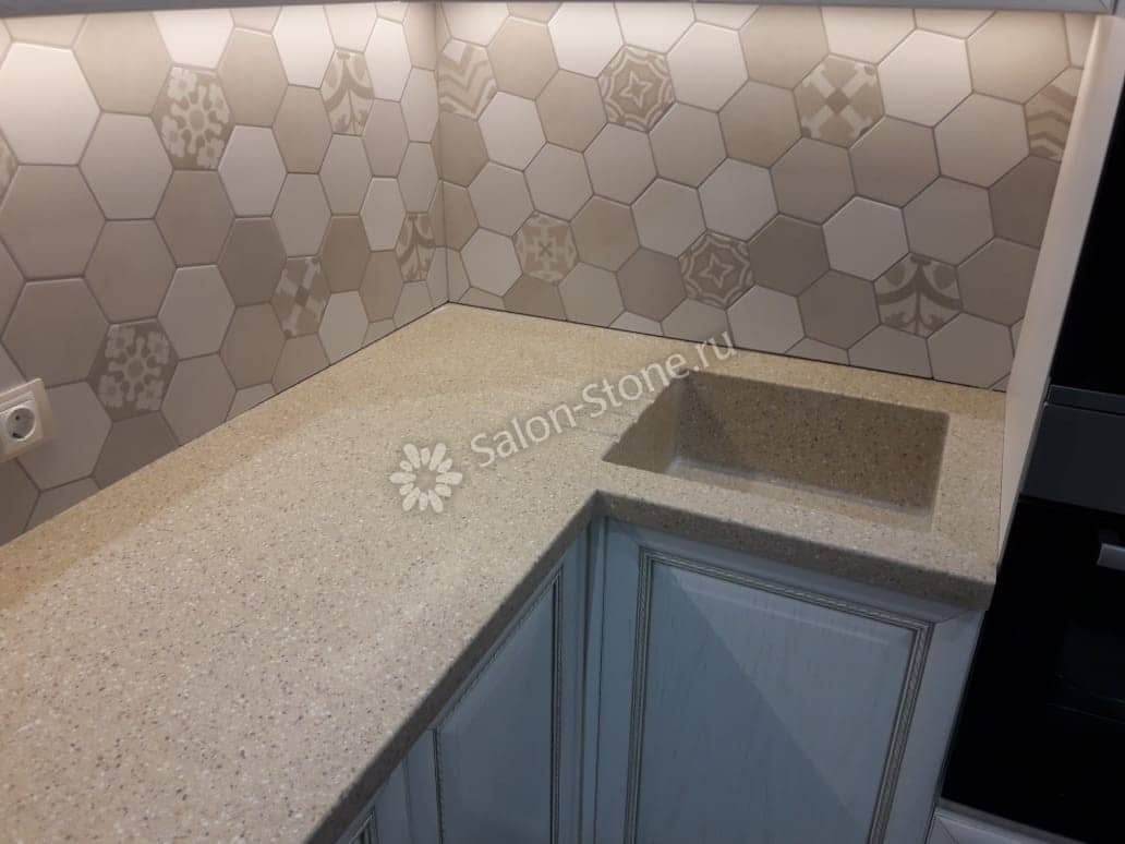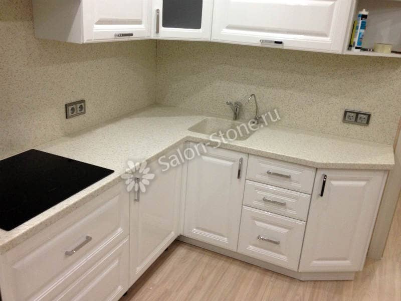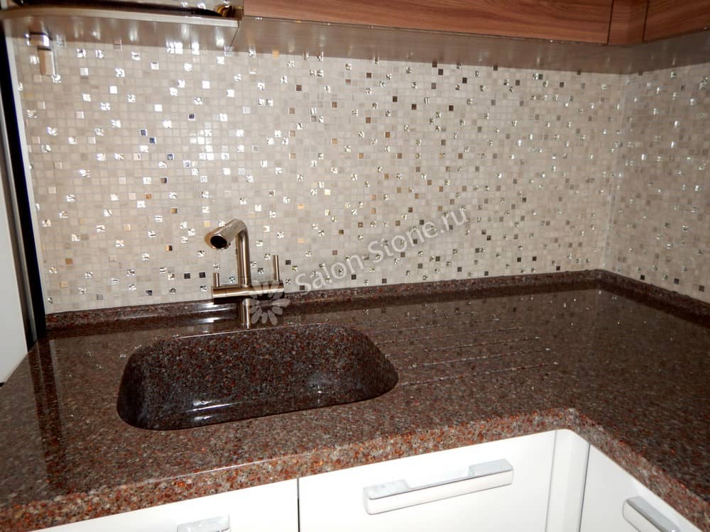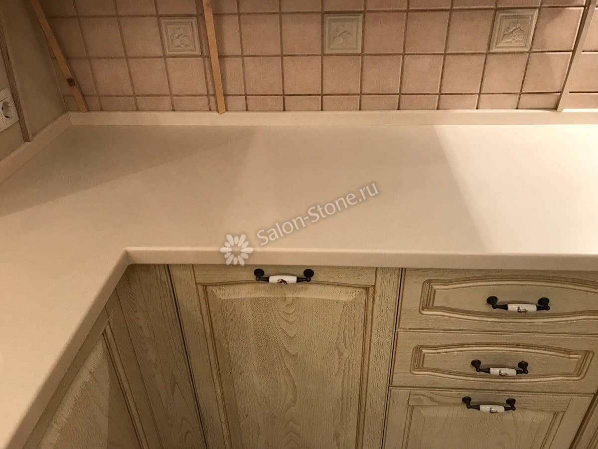 При этом искусственный камень лишен недостатков натурального: он не дает сколов и трещин, не реагирует на перепады температур и солнечные лучи, не впитывает воду и не создает питательной среды для бактерий. Такая рабочая поверхность гигиенична и долговечна.