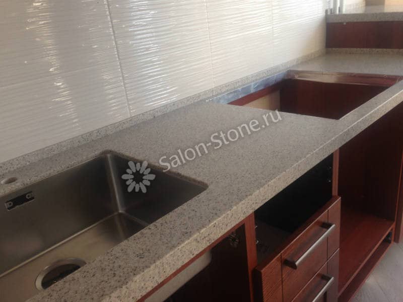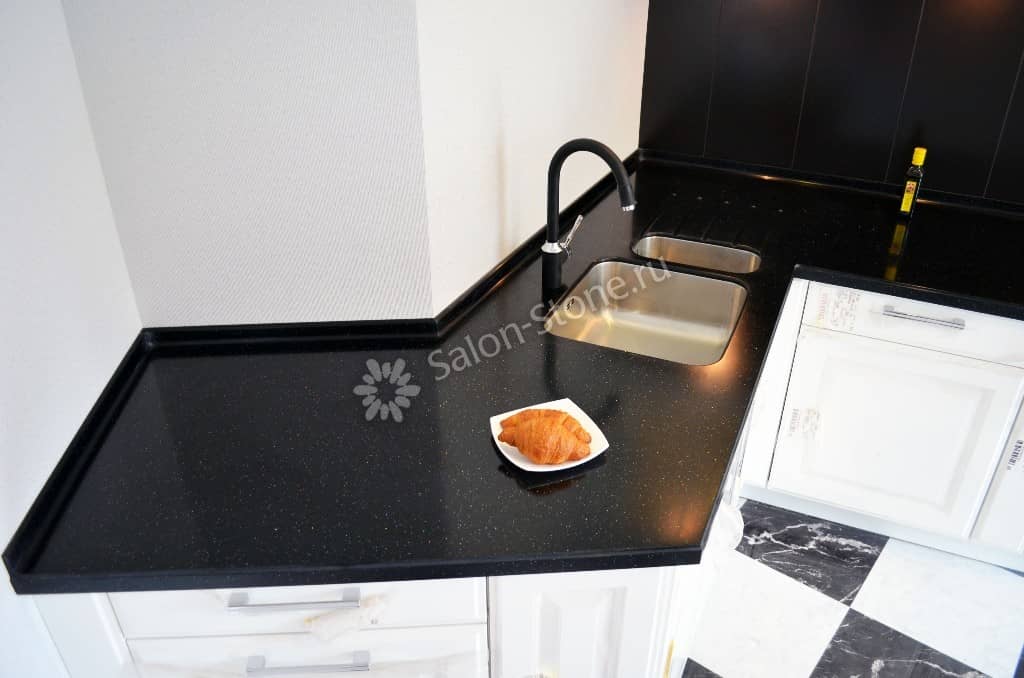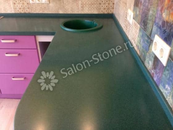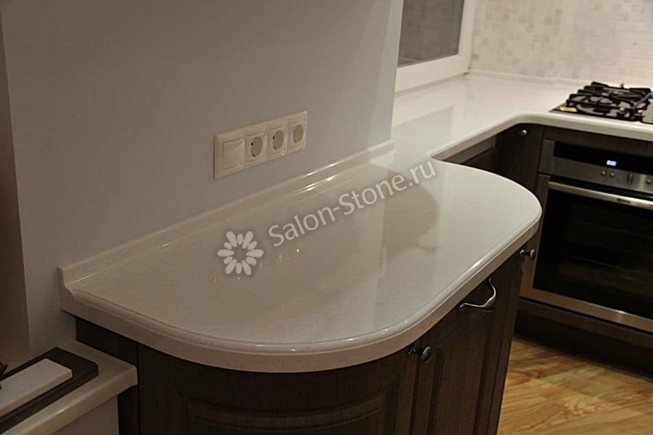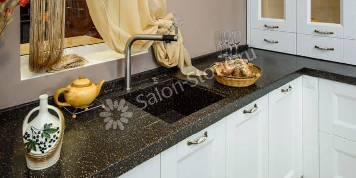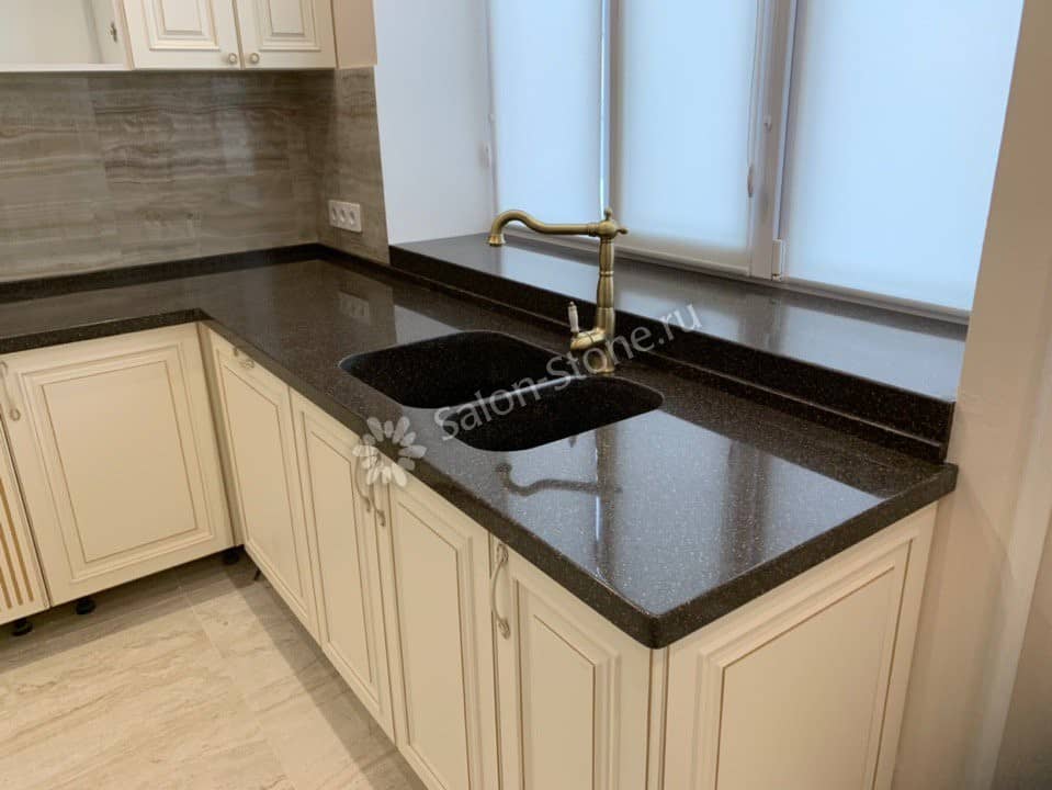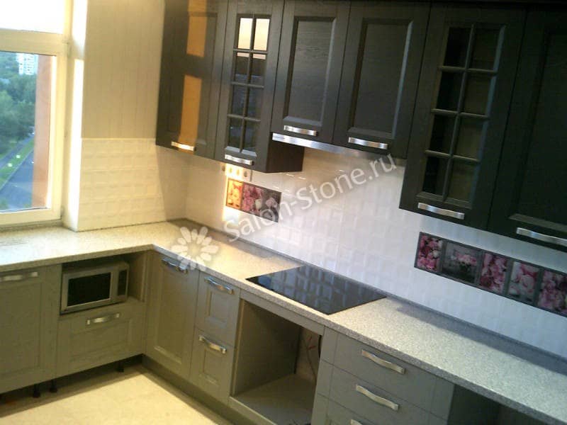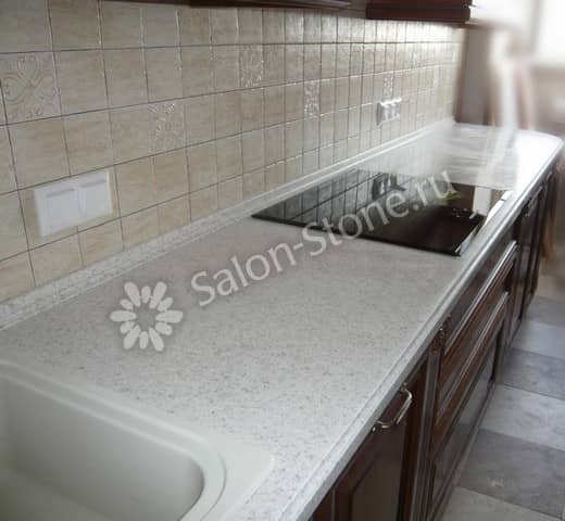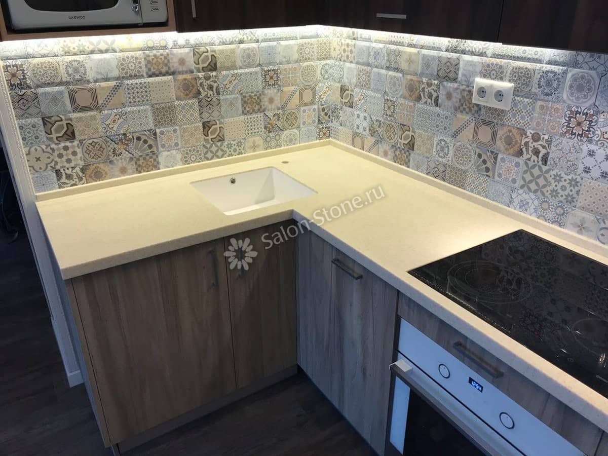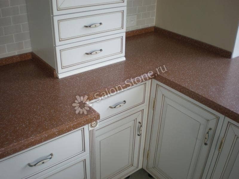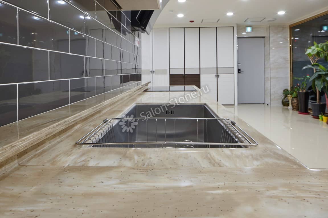 При этом искусственный камень лишен недостатков натурального: он не дает сколов и трещин, не реагирует на перепады температур и солнечные лучи, не впитывает воду и не создает питательной среды для бактерий. Такая рабочая поверхность гигиенична и долговечна.