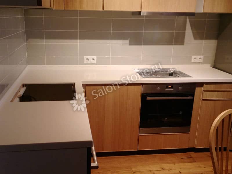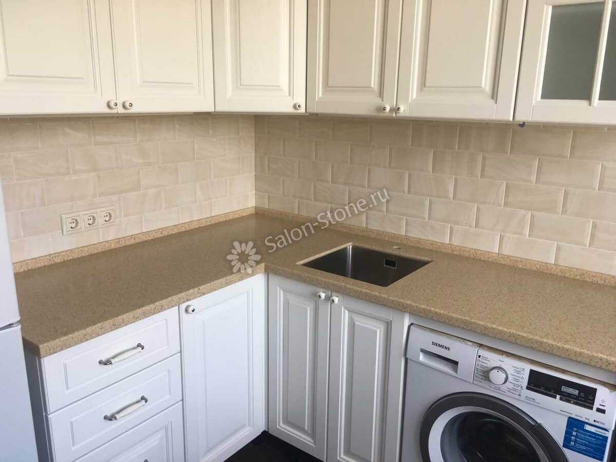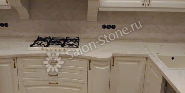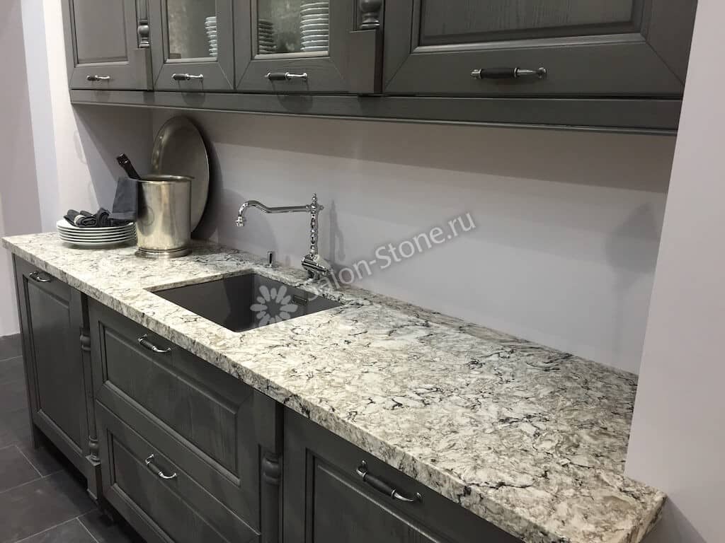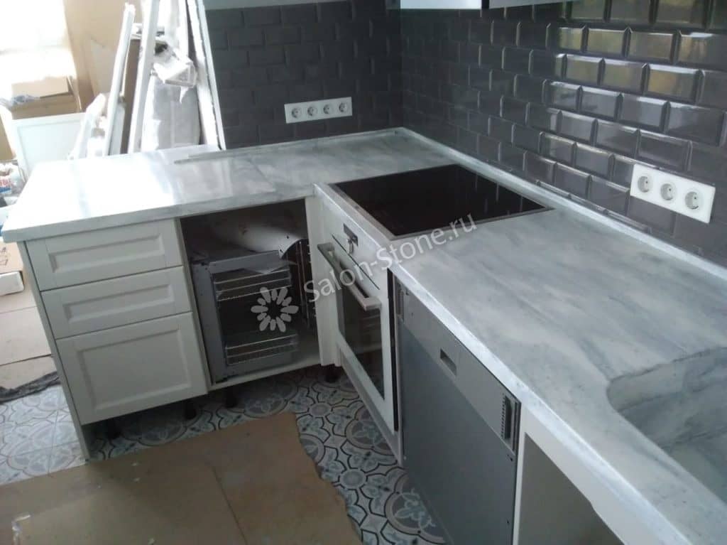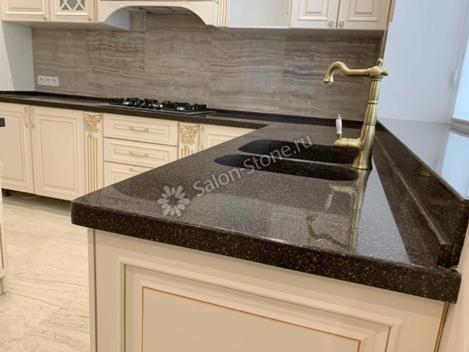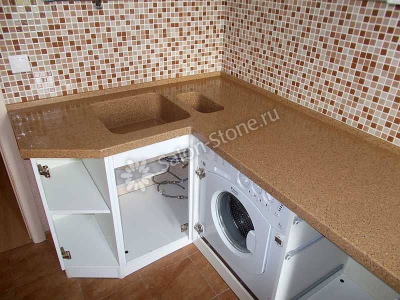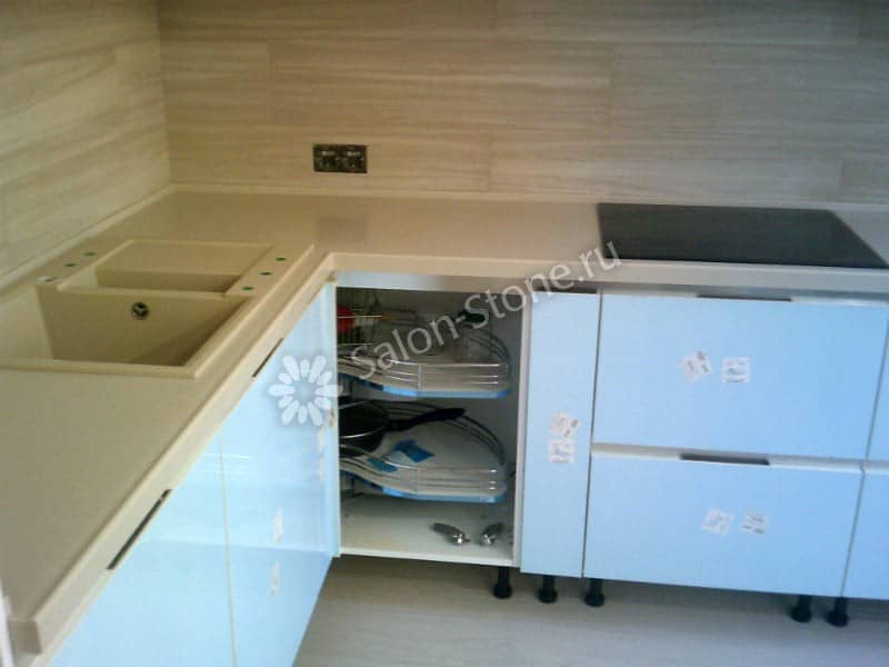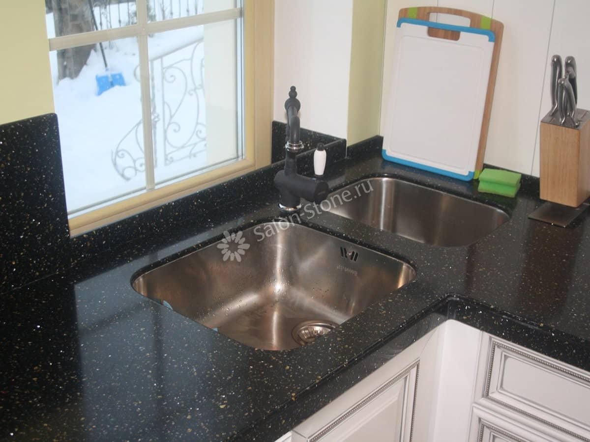 При этом искусственный камень лишен недостатков натурального: он не дает сколов и трещин, не реагирует на перепады температур и солнечные лучи, не впитывает воду и не создает питательной среды для бактерий. Такая рабочая поверхность гигиенична и долговечна.