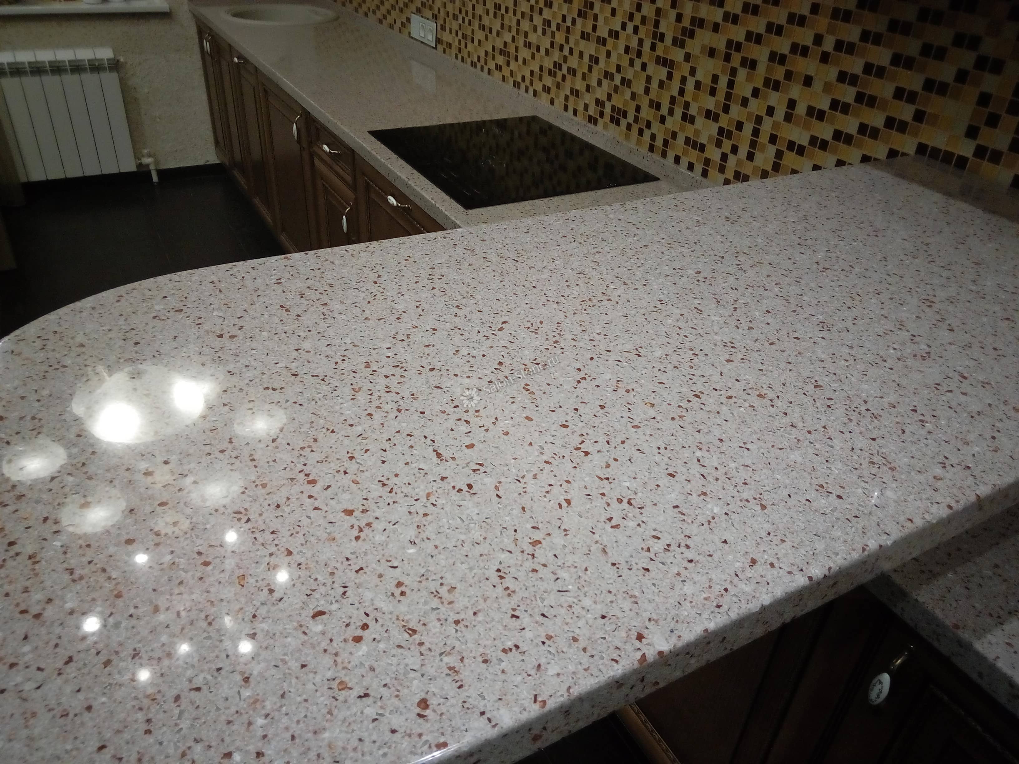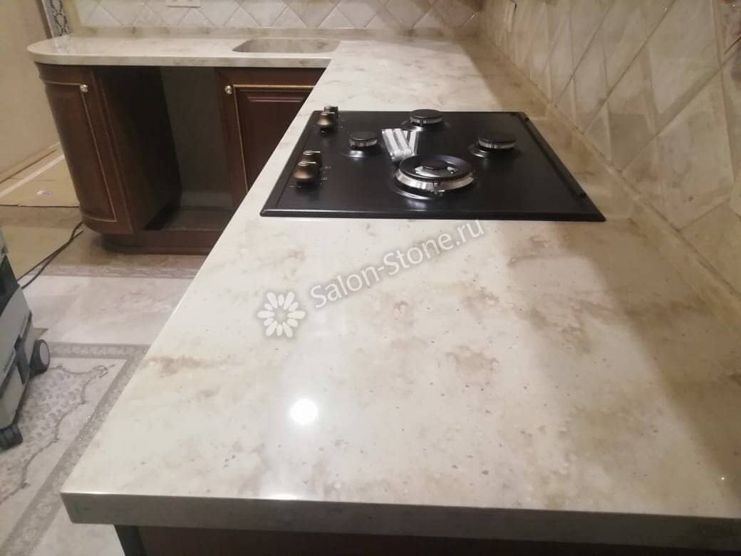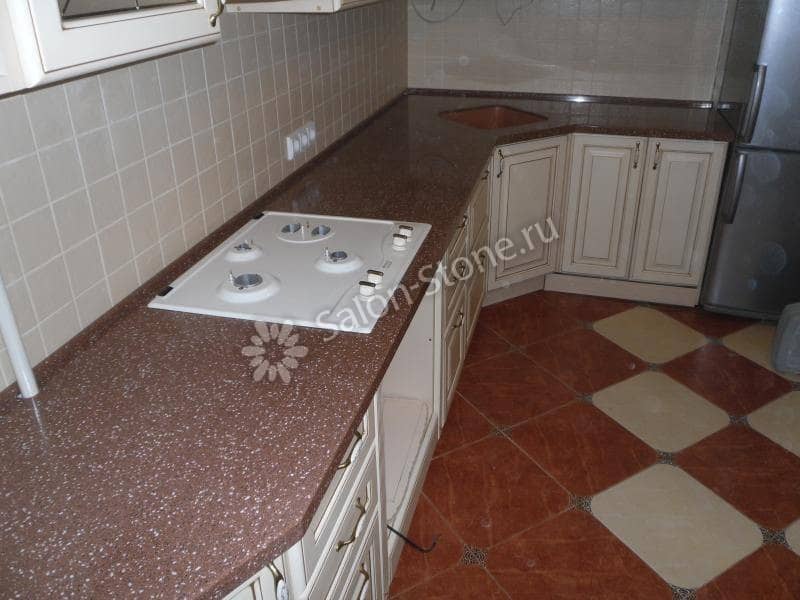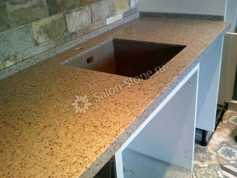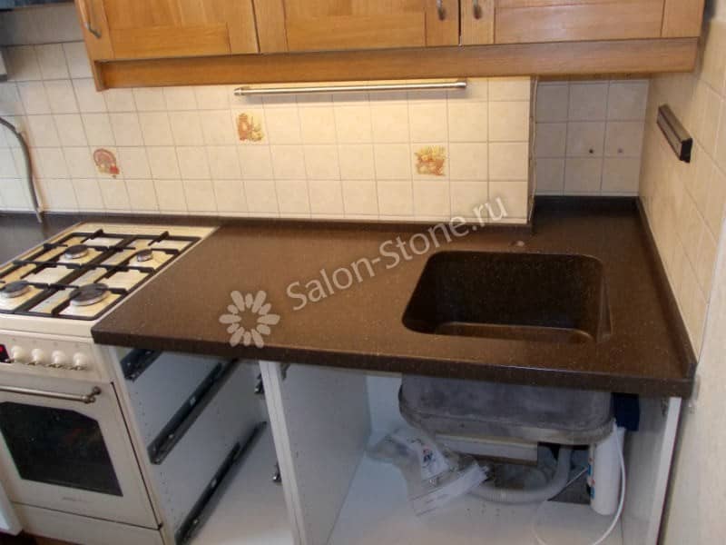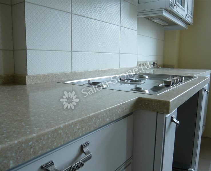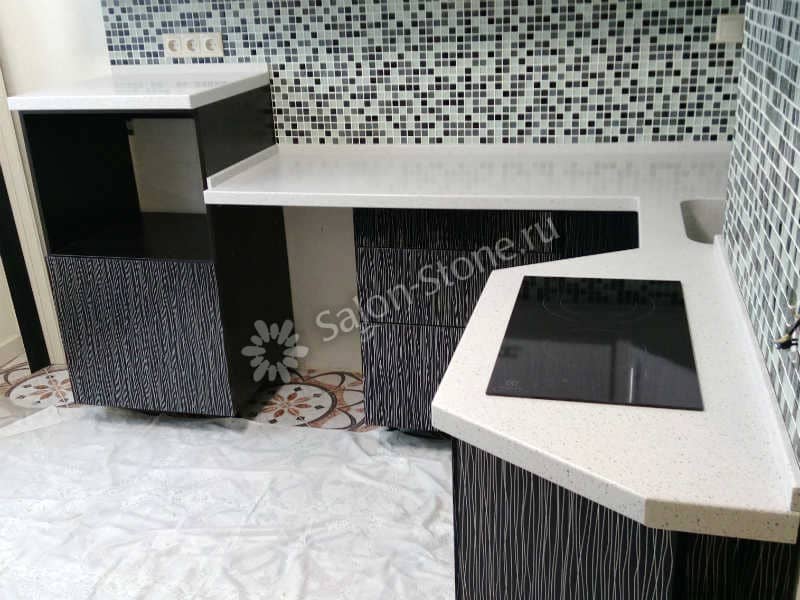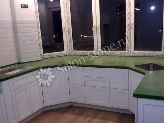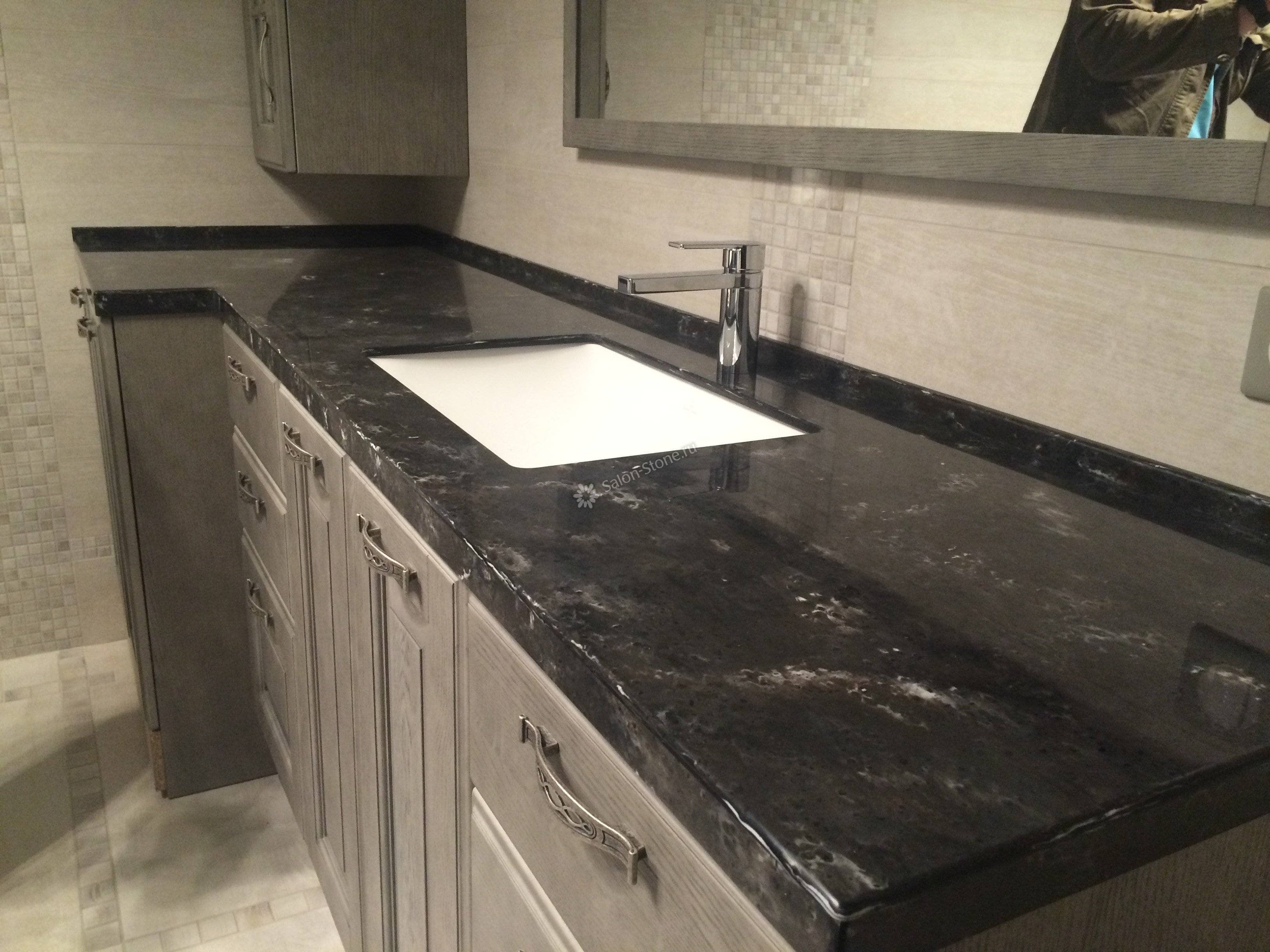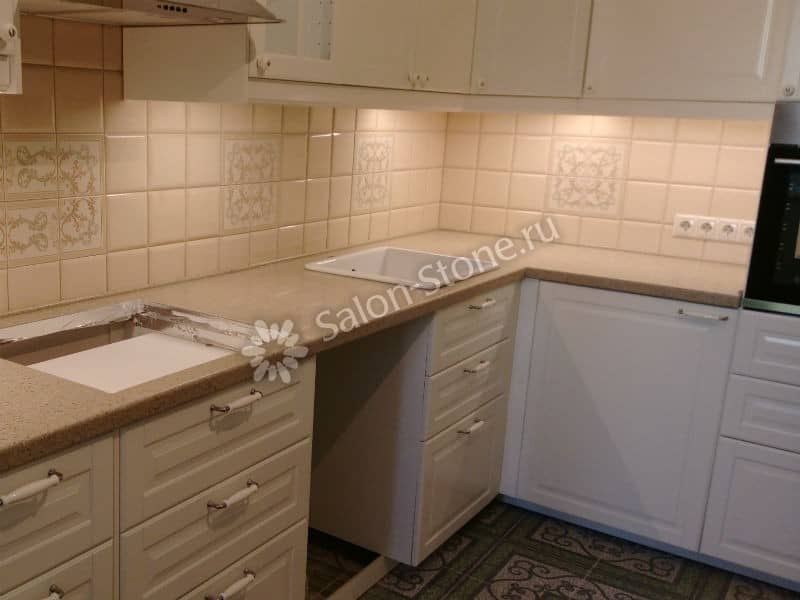 При этом искусственный камень лишен недостатков натурального: он не дает сколов и трещин, не реагирует на перепады температур и солнечные лучи, не впитывает воду и не создает питательной среды для бактерий. Такая рабочая поверхность гигиенична и долговечна.