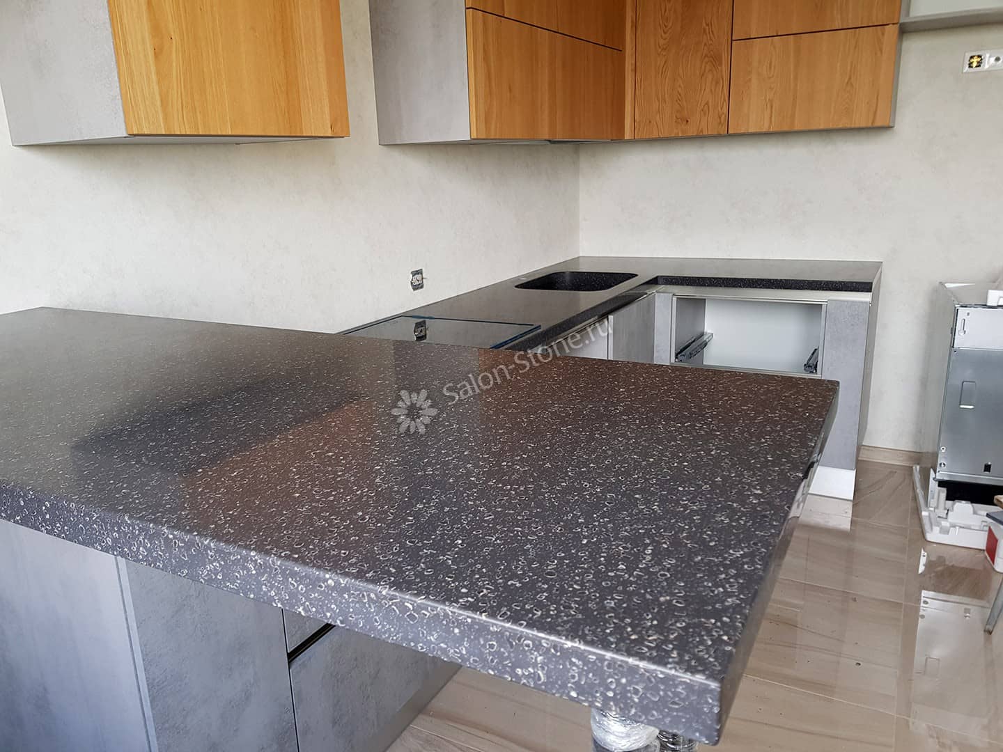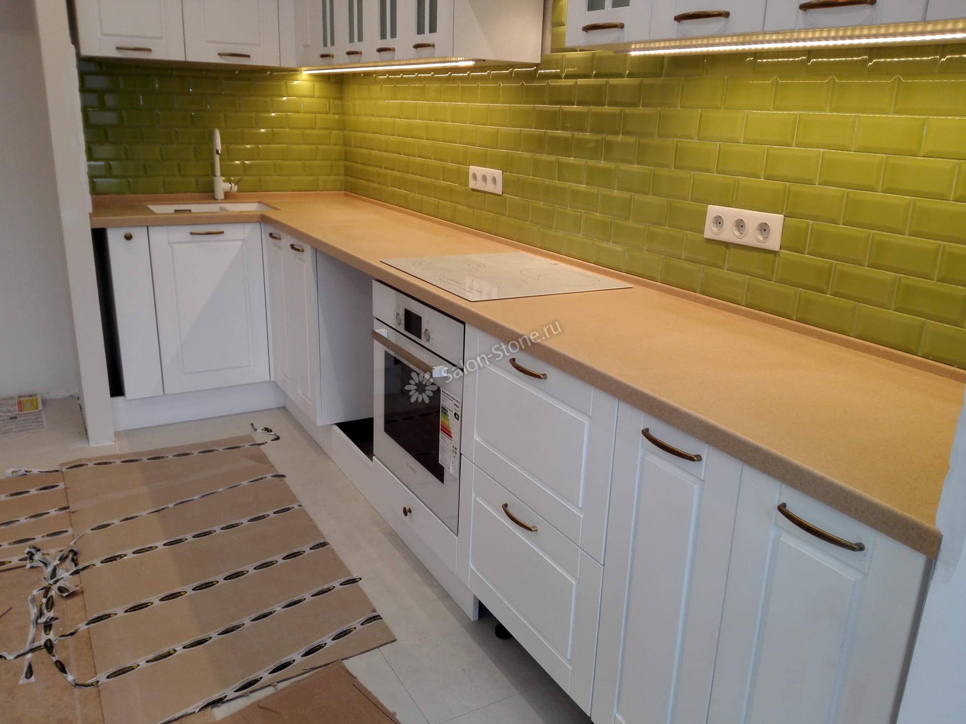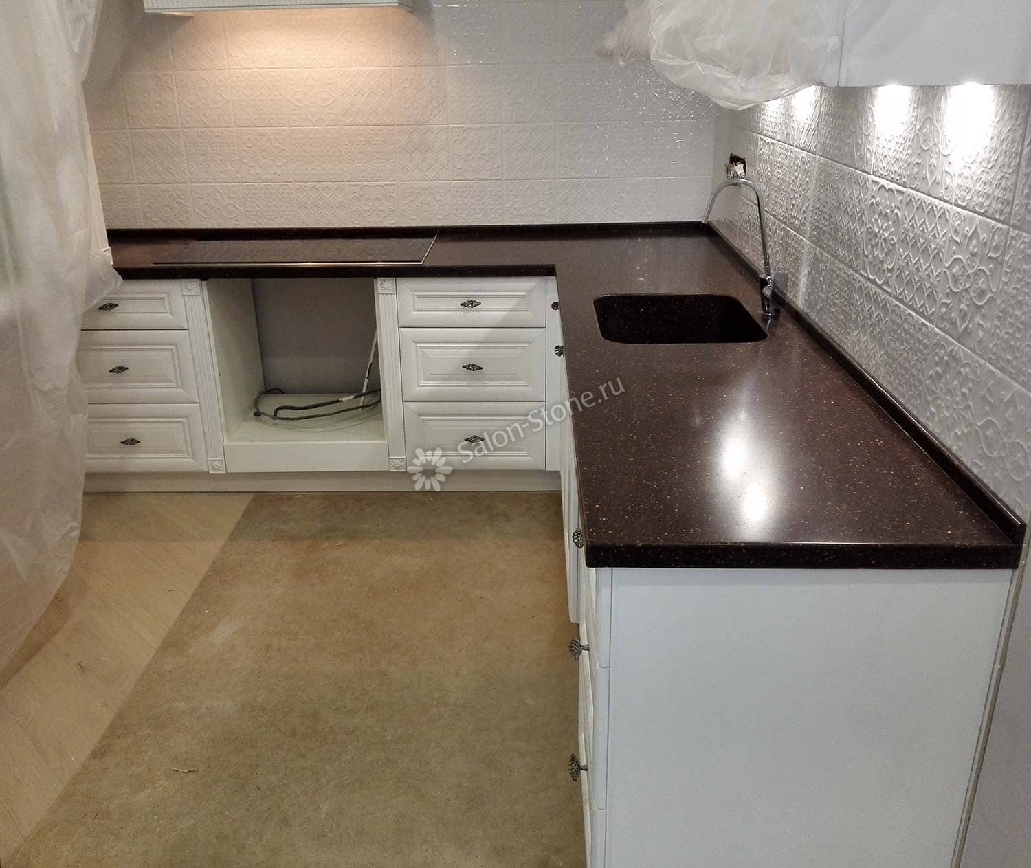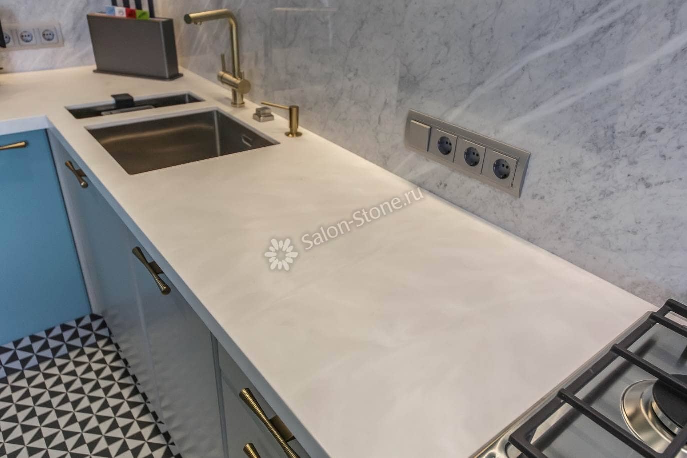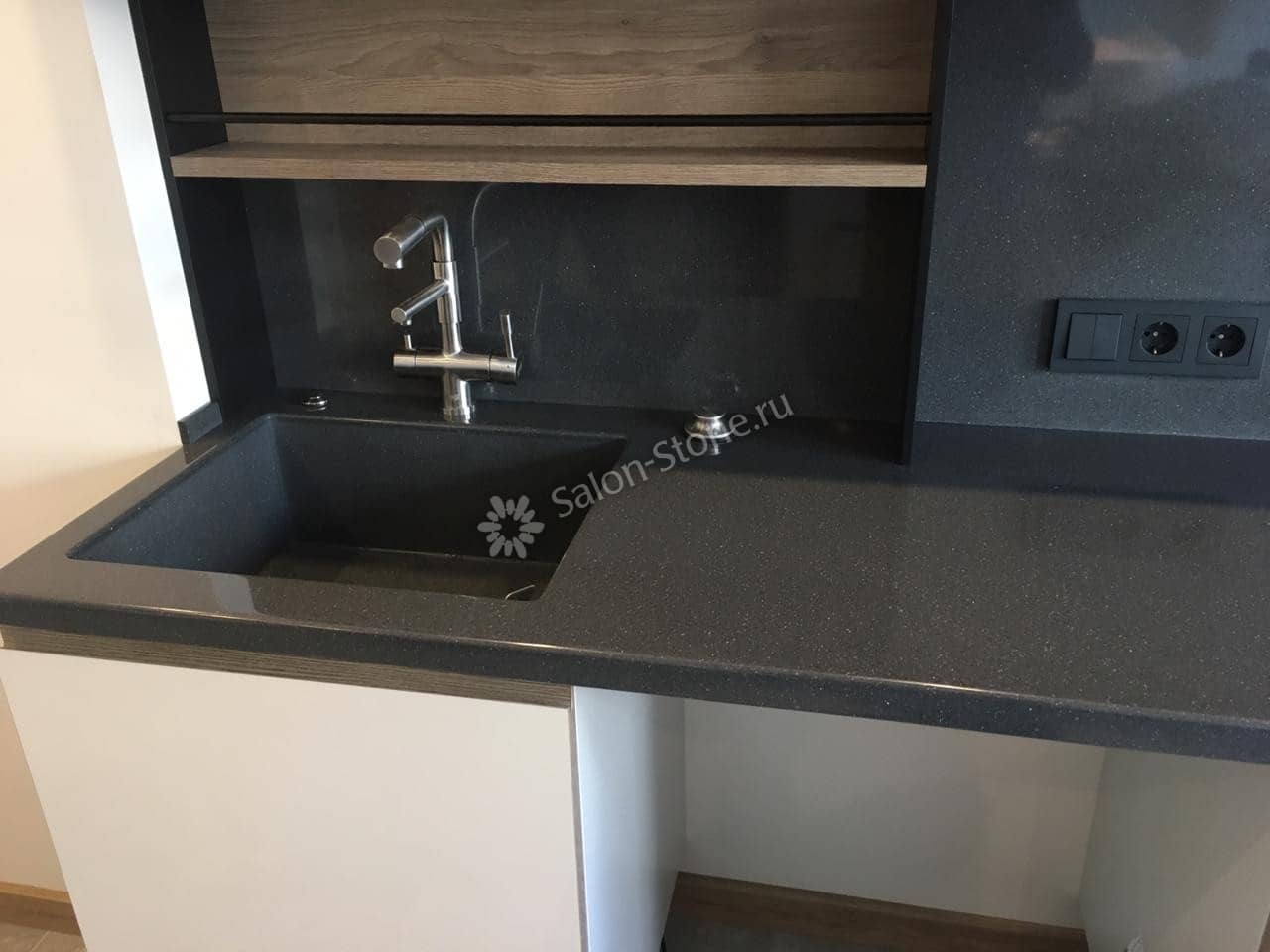 При этом искусственный камень лишен недостатков натурального: он не дает сколов и трещин, не реагирует на перепады температур и солнечные лучи, не впитывает воду и не создает питательной среды для бактерий. Такая рабочая поверхность гигиенична и долговечна.