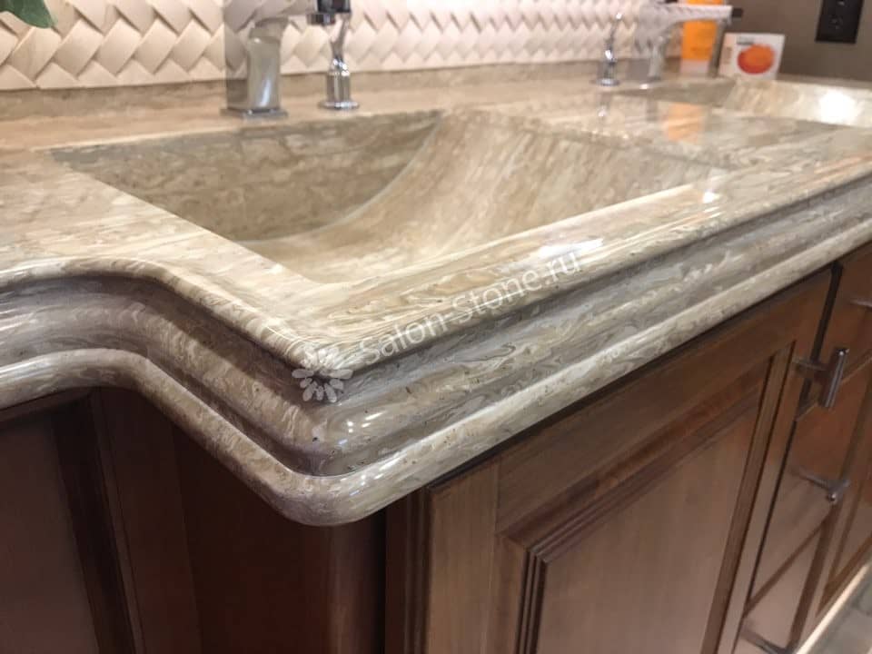 Мойки, раковины, подоконники и столешницы из такого материала отличаются следующими плюсами: