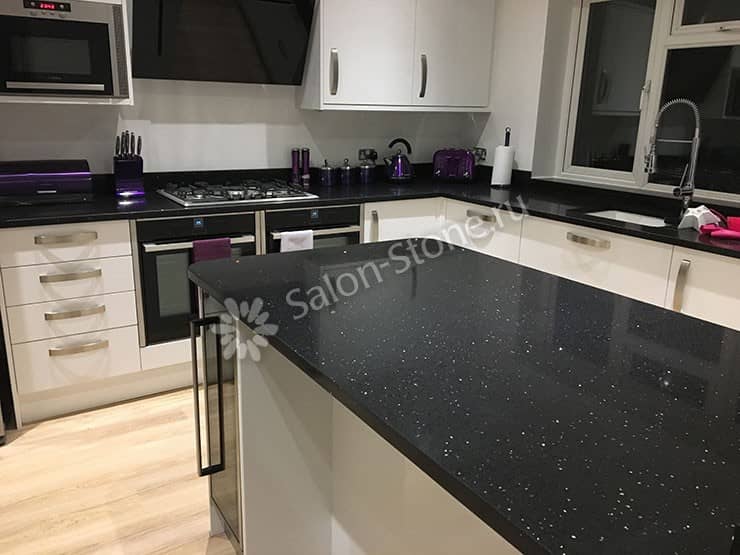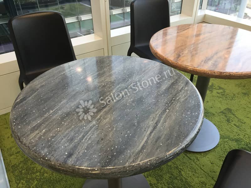 Но, являясь обладателем красивой поверхности, не забывайте о ней заботиться. Постарайтесь не ронять на нее слишком тяжелые предметы, не подвергать резким и сильным перепадам температур. Обязательно протирайте ее насухо, чтобы не допустить появления известковых пятен. При бережном и грамотном отношении ваша столешница прослужит вам не одно десятилетие.